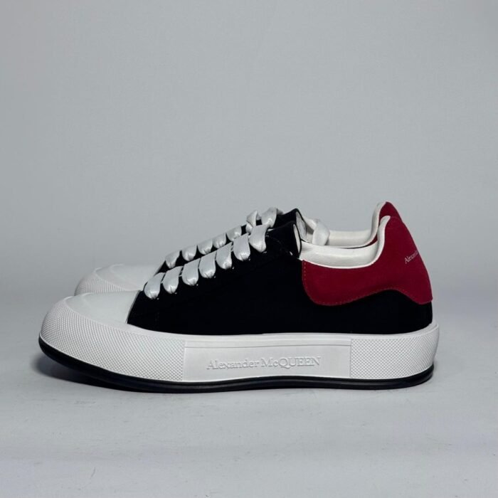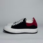 Make a bold statement with these Alexander McQueen black and red low-top sneakers. Crafted with premium materials, cushioned soles, and contrasting panels, these trainers are perfect for everyday wear while maintaining a luxury edge. Stylish, versatile, and built for comfort.