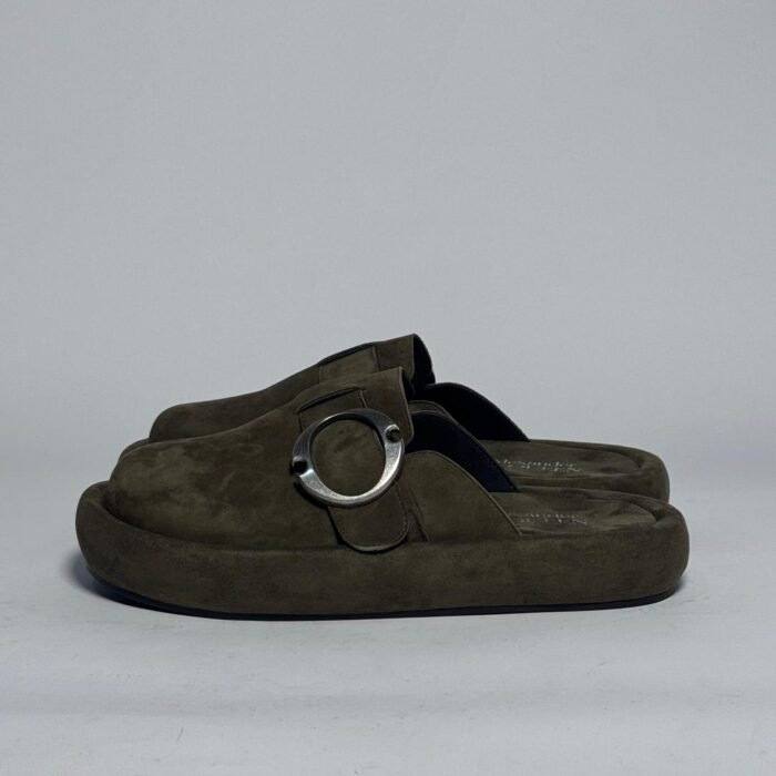 Alexander McQueen Suede Buckle Mules – Olive Green