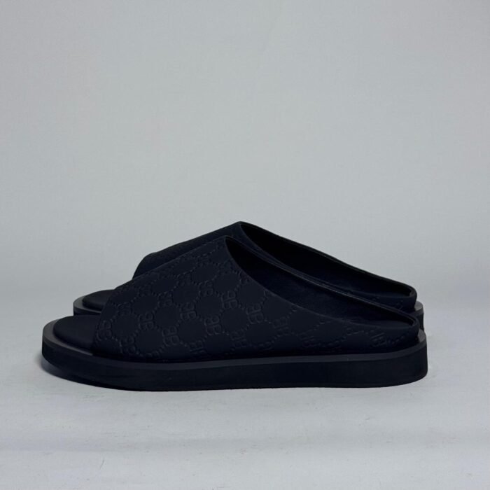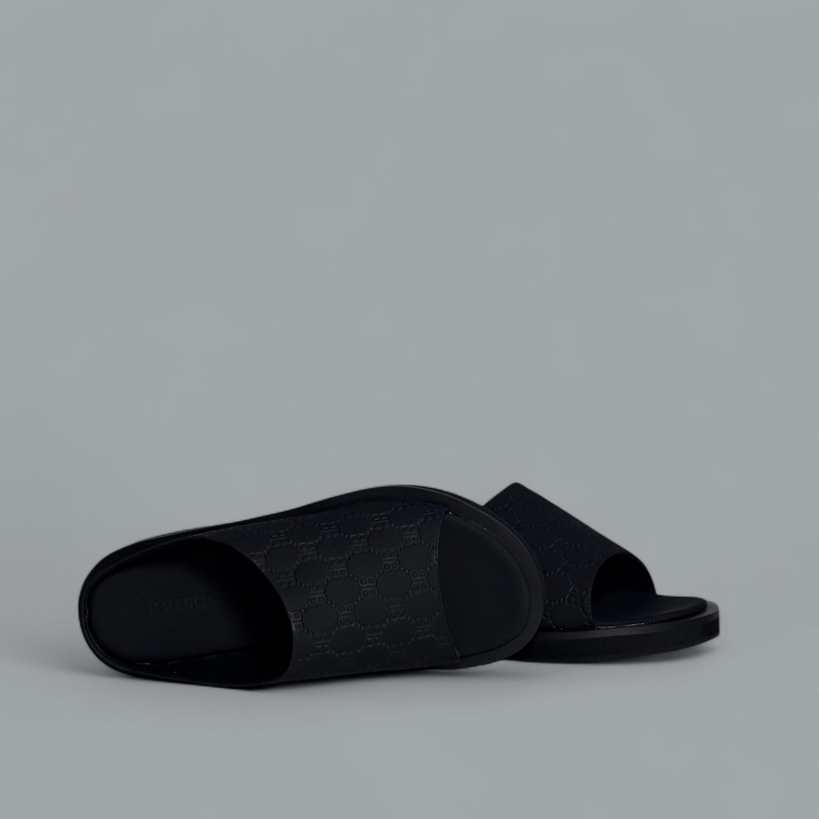Step into effortless style with these luxury black embossed slides. Crafted with a sleek all-black finish and premium embossed detailing, these slip-on sandals combine comfort with a sophisticated edge. Perfect for casual outings, beachwear, or elevated street style.
