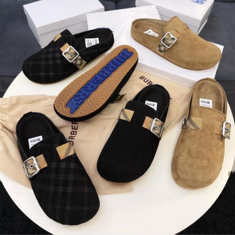 Home Men Slippers & Sandal Burberry Suede & Check Mules (Boston style)