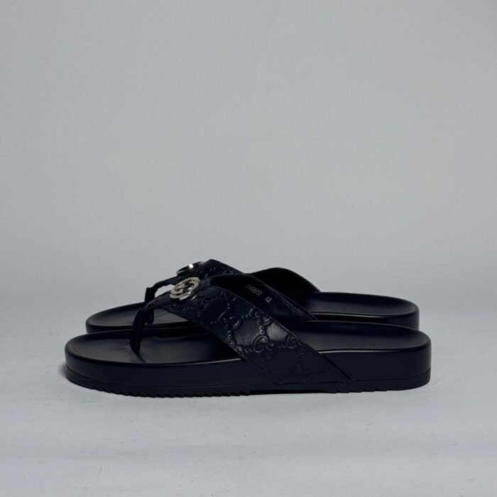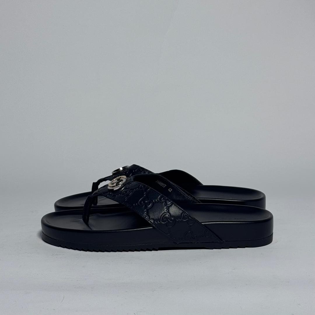 Step into timeless elegance with the Gucci Interlocking G Leather Sandals in Black, crafted from premium embossed leather. Featuring Gucci’s iconic double G emblem, these sandals balance luxury and comfort, perfect for casual sophistication.