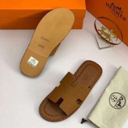 Hermès Izmir H Slippers – Bordeaux Chevron (Wine Red)