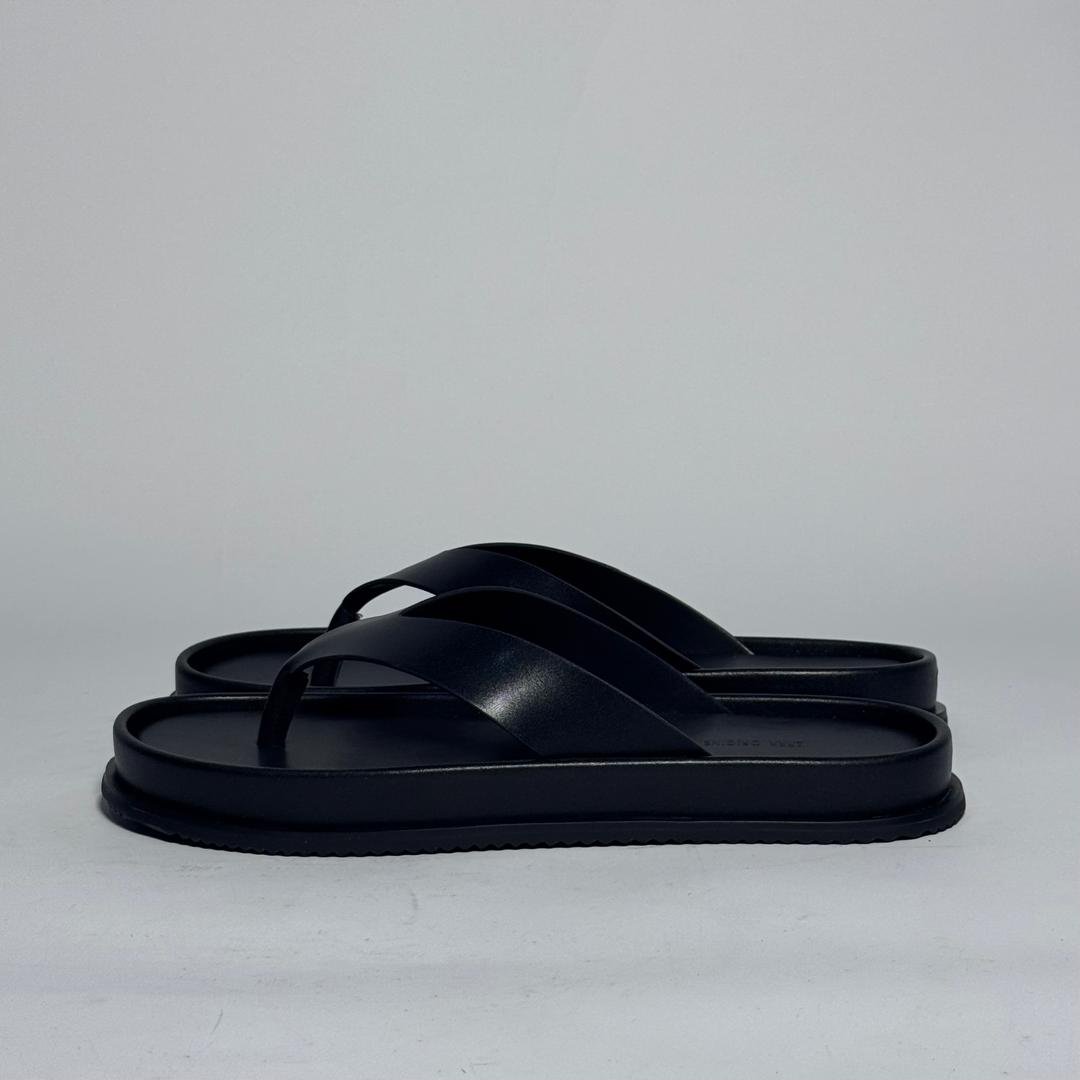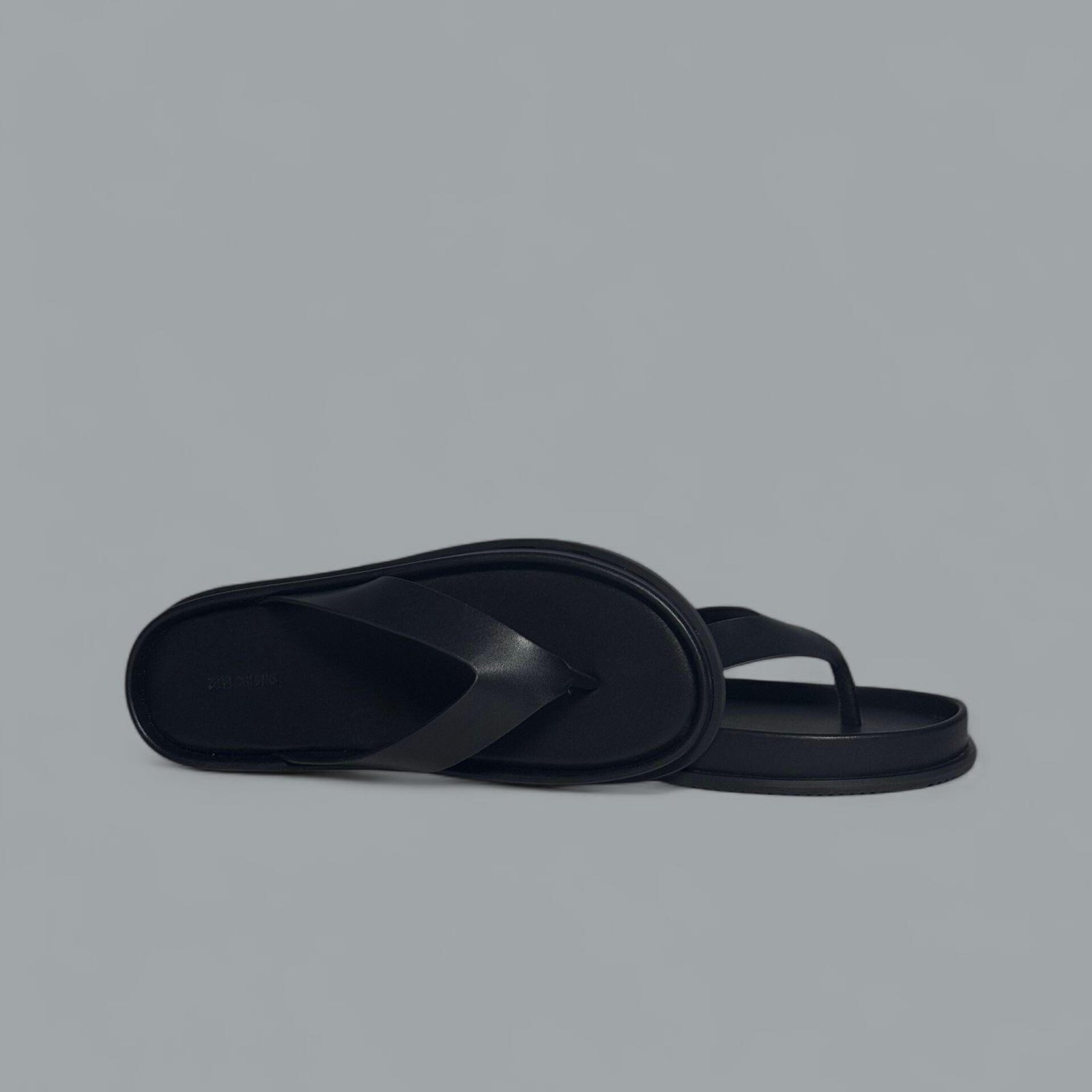 Stay sleek and stylish with these black minimalist leather flip-flops. Featuring a double strap design and cushioned sole, these sandals combine simplicity with elegance. Perfect for summer outfits, beach days, and casual luxury wear.