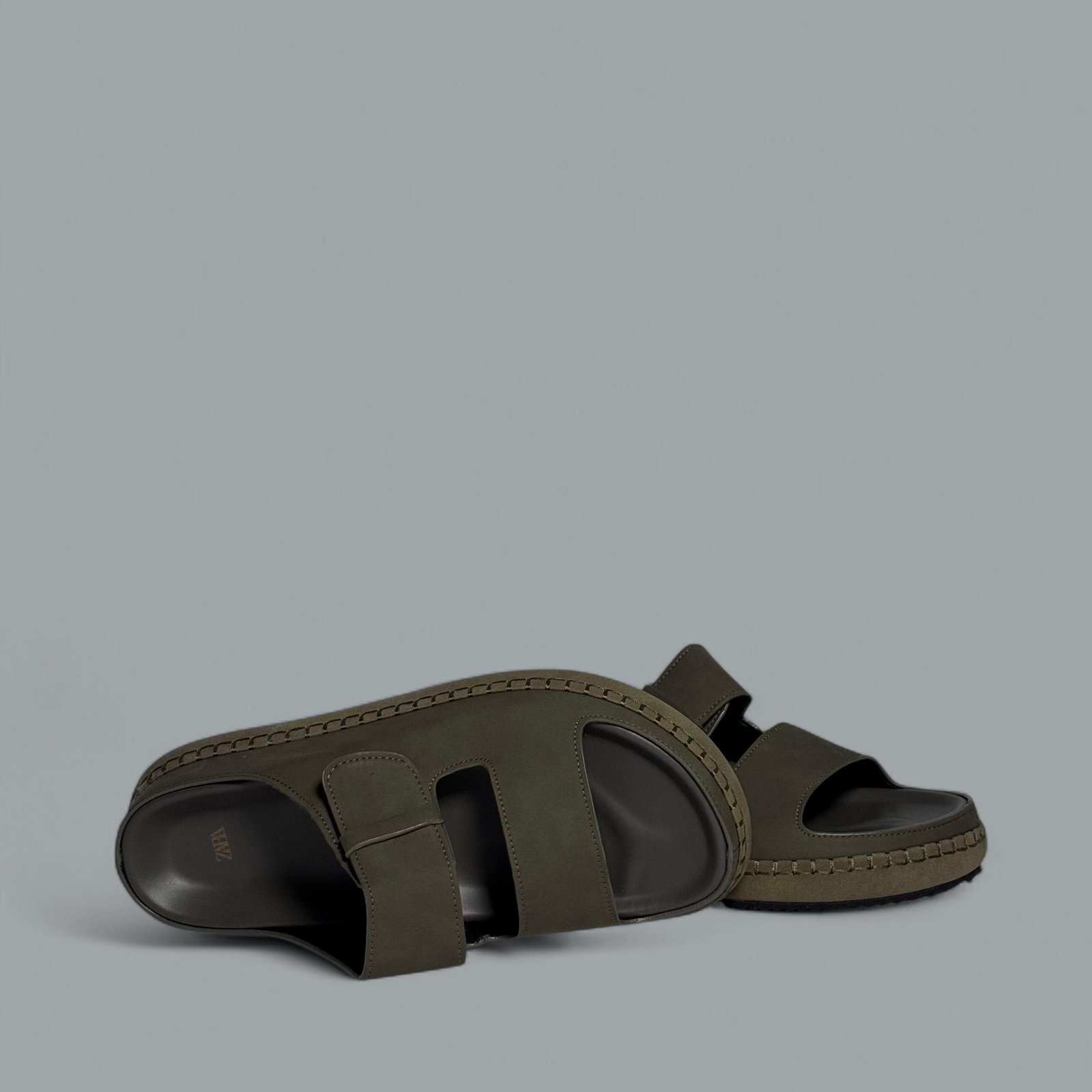Step into everyday comfort with these olive green leather sandals. Designed with wide Velcro straps, stitched detailing, and a cushioned footbed, they offer a perfect balance of support and effortless style. Ideal for casual luxury and relaxed summer wear.