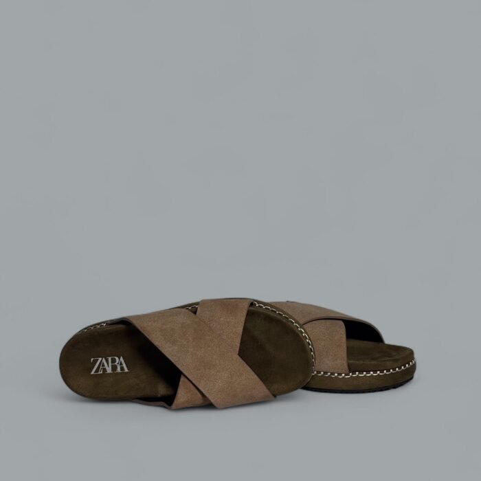 Home Men Slippers & Sandal Zara Suede Crossover Sandals – Taupe